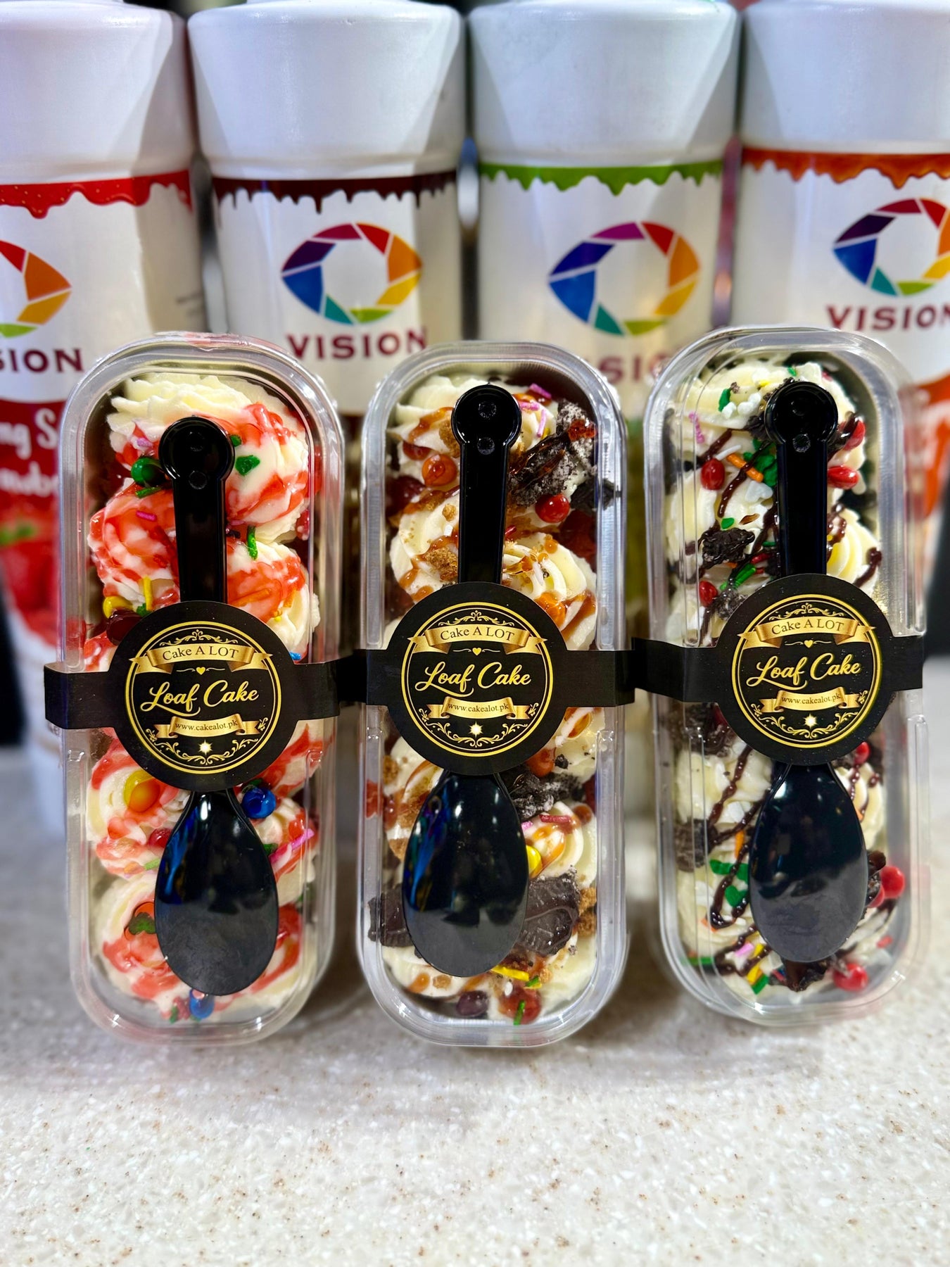 Indulge in the rich, creamy delight of our Cake A LOT Premium Loaf Cake, beautifully layered and topped with smooth whipped cream, chocolate drizzle, colorful sprinkles, and delicious toppings. Perfectly packed in a clear, elegant container with a spoon included, this loaf cake is ready to enjoy anytime, anywhere.